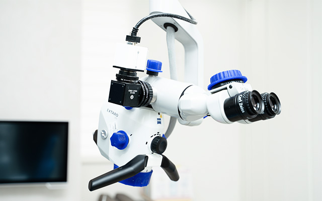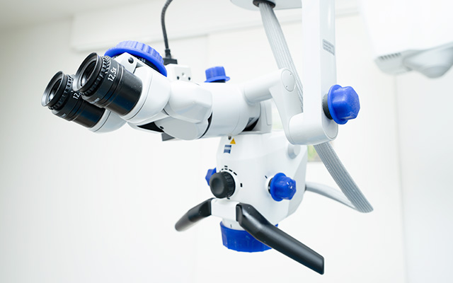 当院では、明るい視野で細部まで確認できる歯科用顕微鏡「マイクロスコープ」を導入し、根管治療で使用しております。